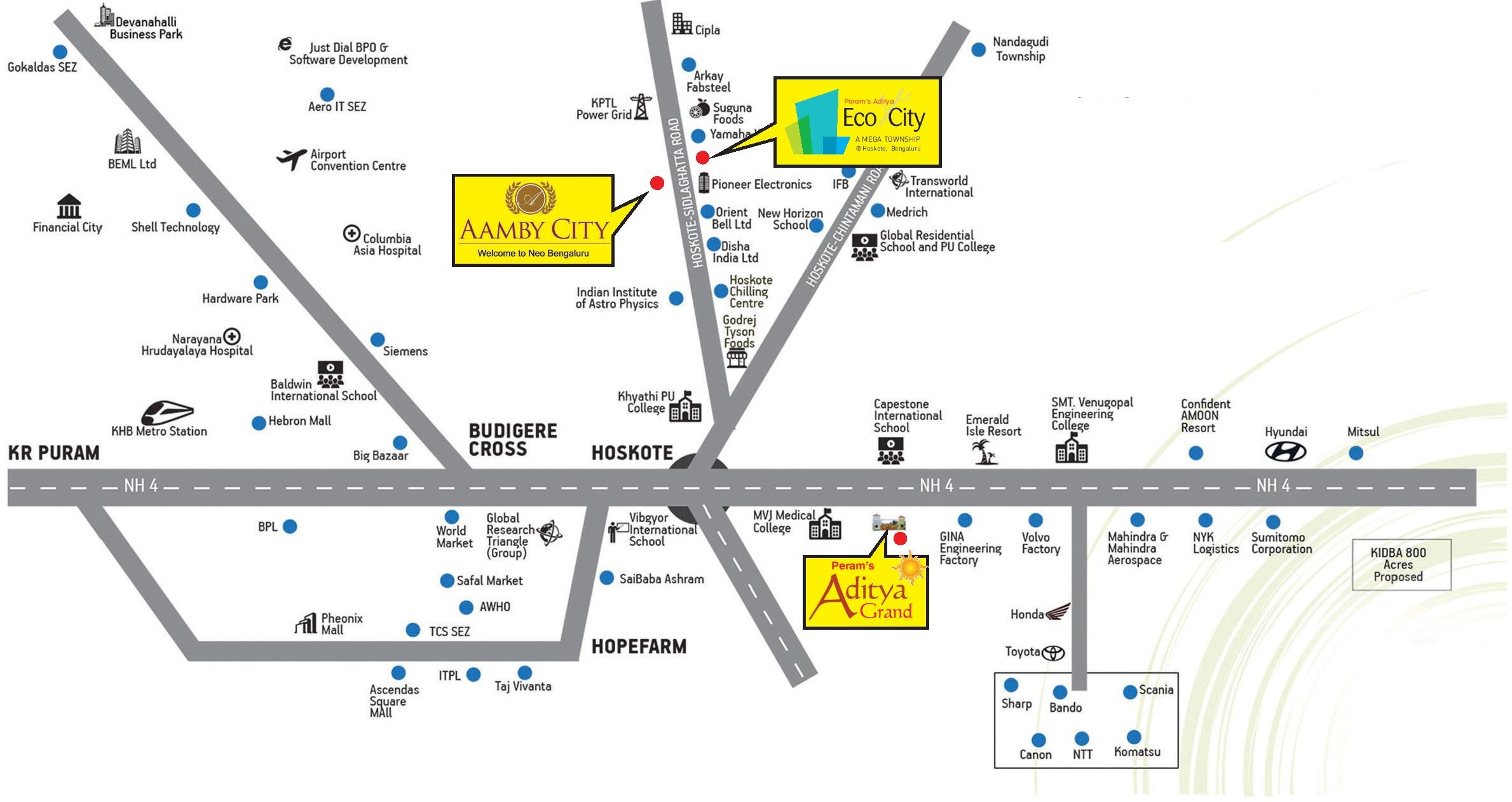 Abhaya Shelters Aditya Grand in Hoskote, Bangalore is offering a total of 471 plots. Based in Karnataka, Abhaya Shelters is a renowned real estate group of south. The size of each plot measures between 1,200 to 4,000 sq ft and are ready to be moved into. Spread across 30 acres, the plots are available through the builder as well as through resale. Several amenities are present for the community, including a gymnasium, swimming pool, multipurpose room, landscaped gardens, children’s pl...more