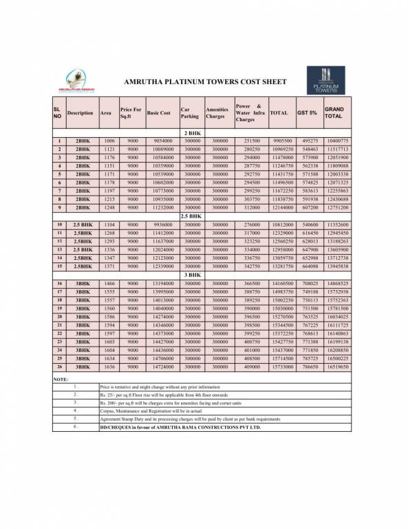 Amrutha Platinum TowersFloor Plans