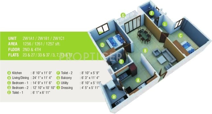 ![]() | 1256 sq ft (2BHK+2T) | - |