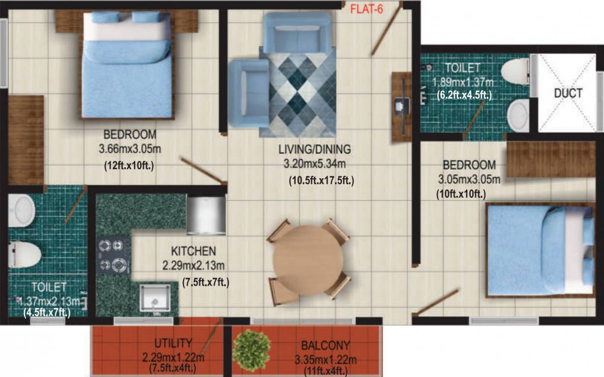 2BHK+2T (826 sq ft)