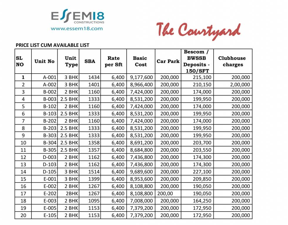 984 sq ft 2 BHK 2T Apartment in Essem 18 Constructions The Courtyard