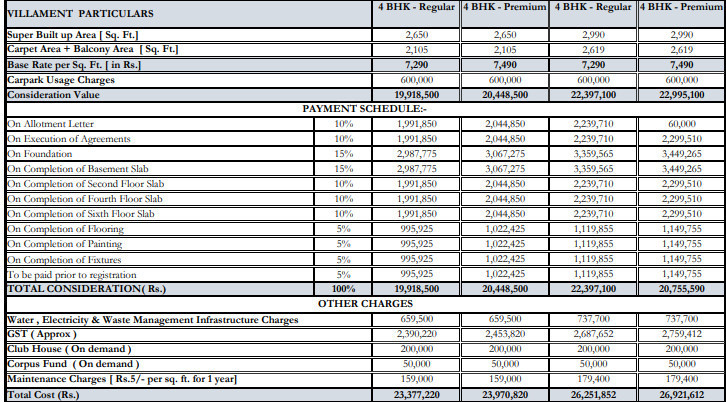 Floor Plan | Carpet Area | Total Area | Builder Price |