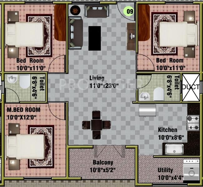 ![]() | 1110 sq ft (2BHK+2T) | - |