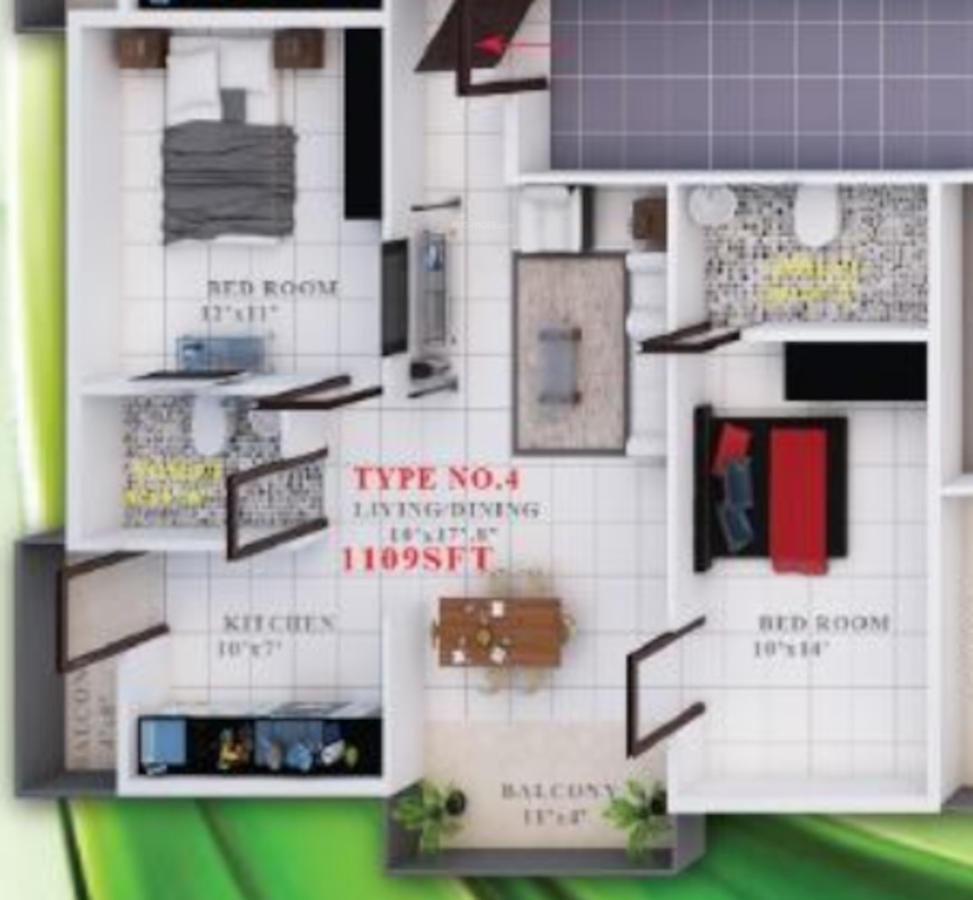![]() | 1109 sq ft (2BHK+2T) | - |