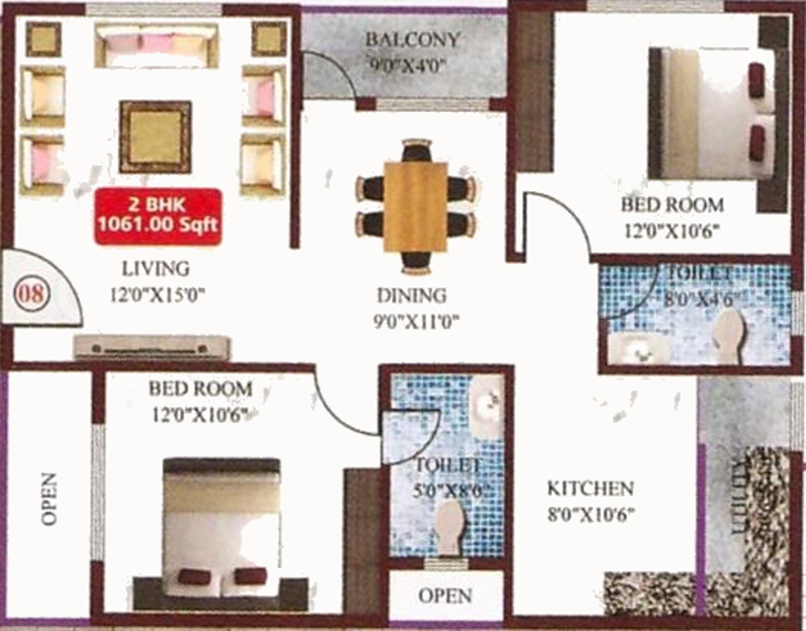 1080 sq ft (2BHK+2T) | - | |