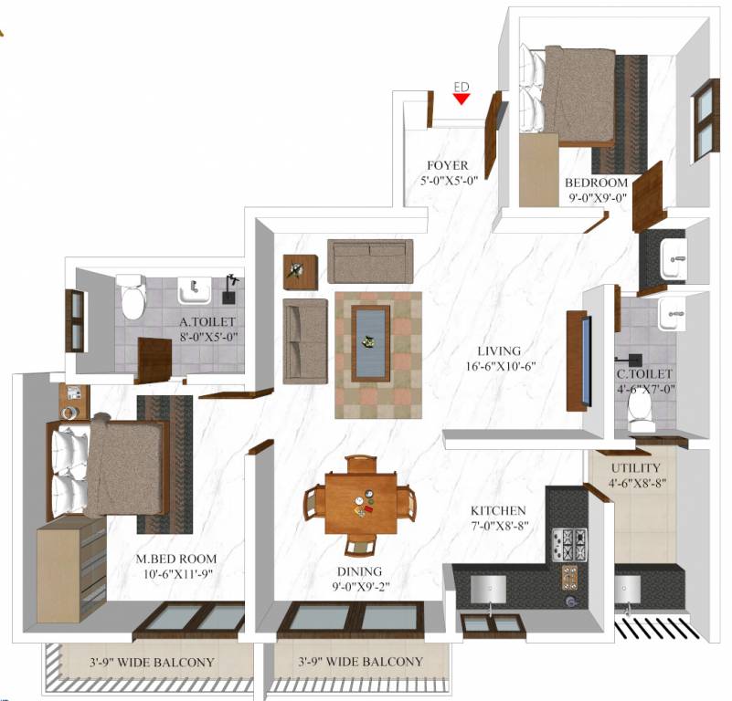 2BHK+2T (1,117 sq ft)