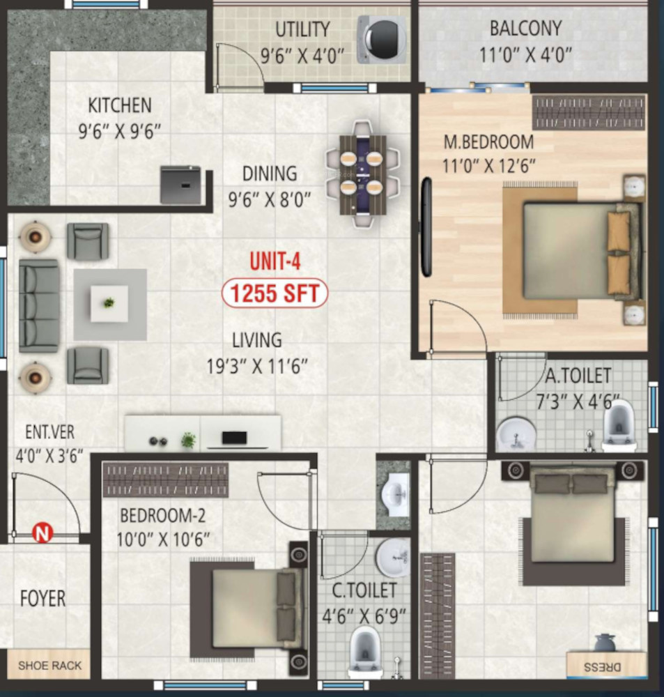1160 sq ft (2BHK+2T) | - |