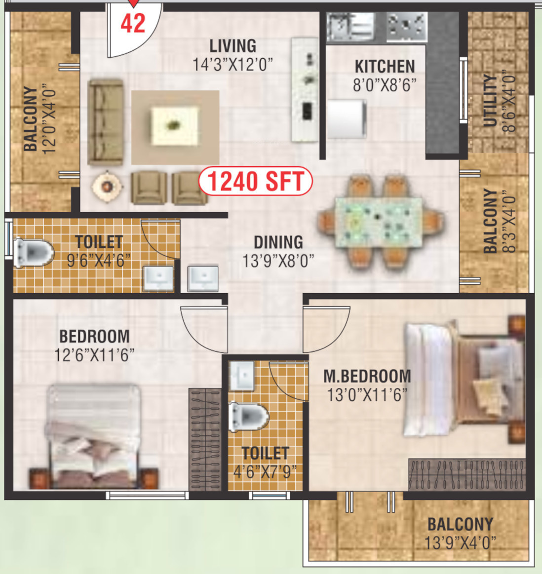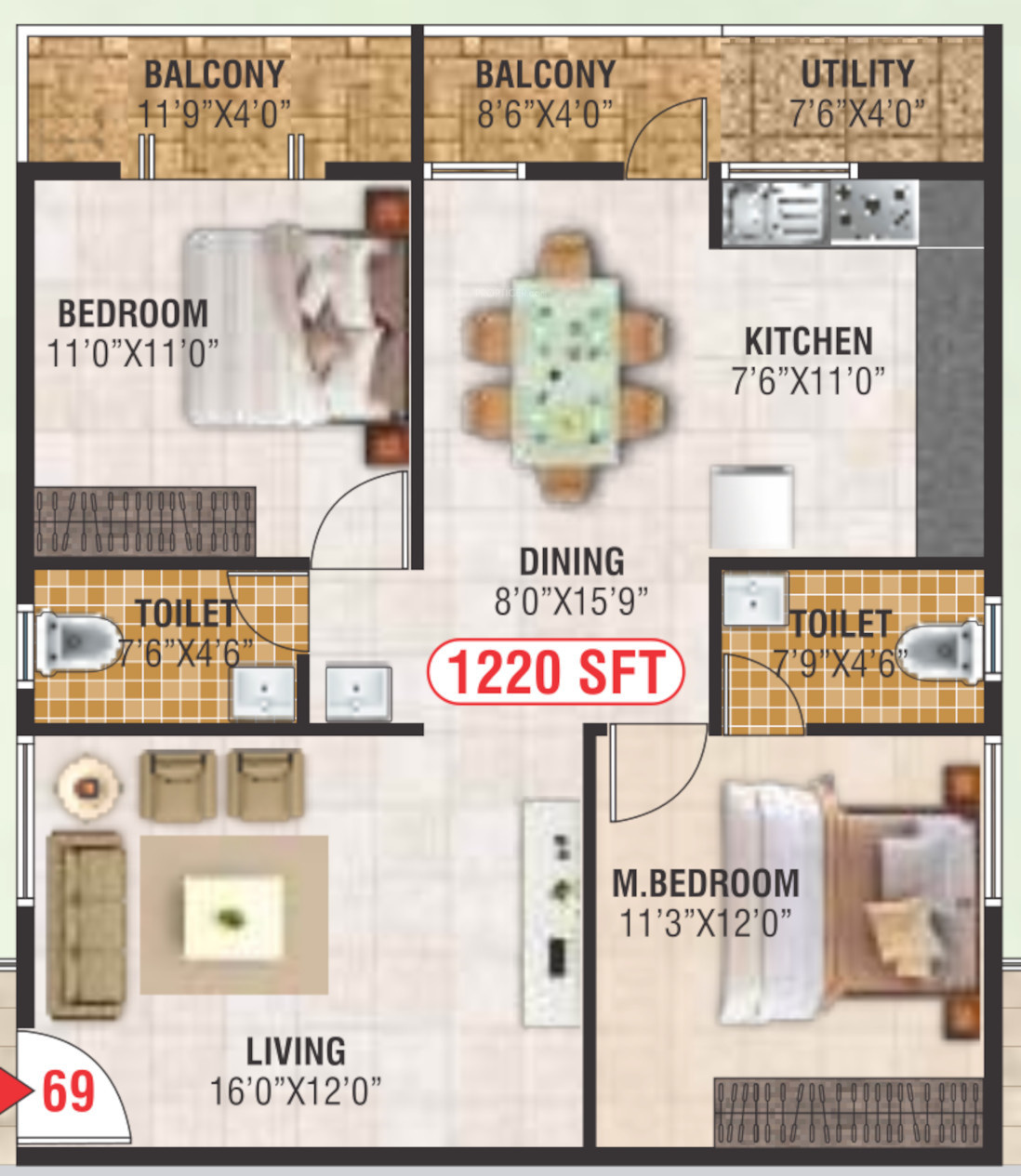 ![]() | 1680 sq ft (3BHK+3T) | - |