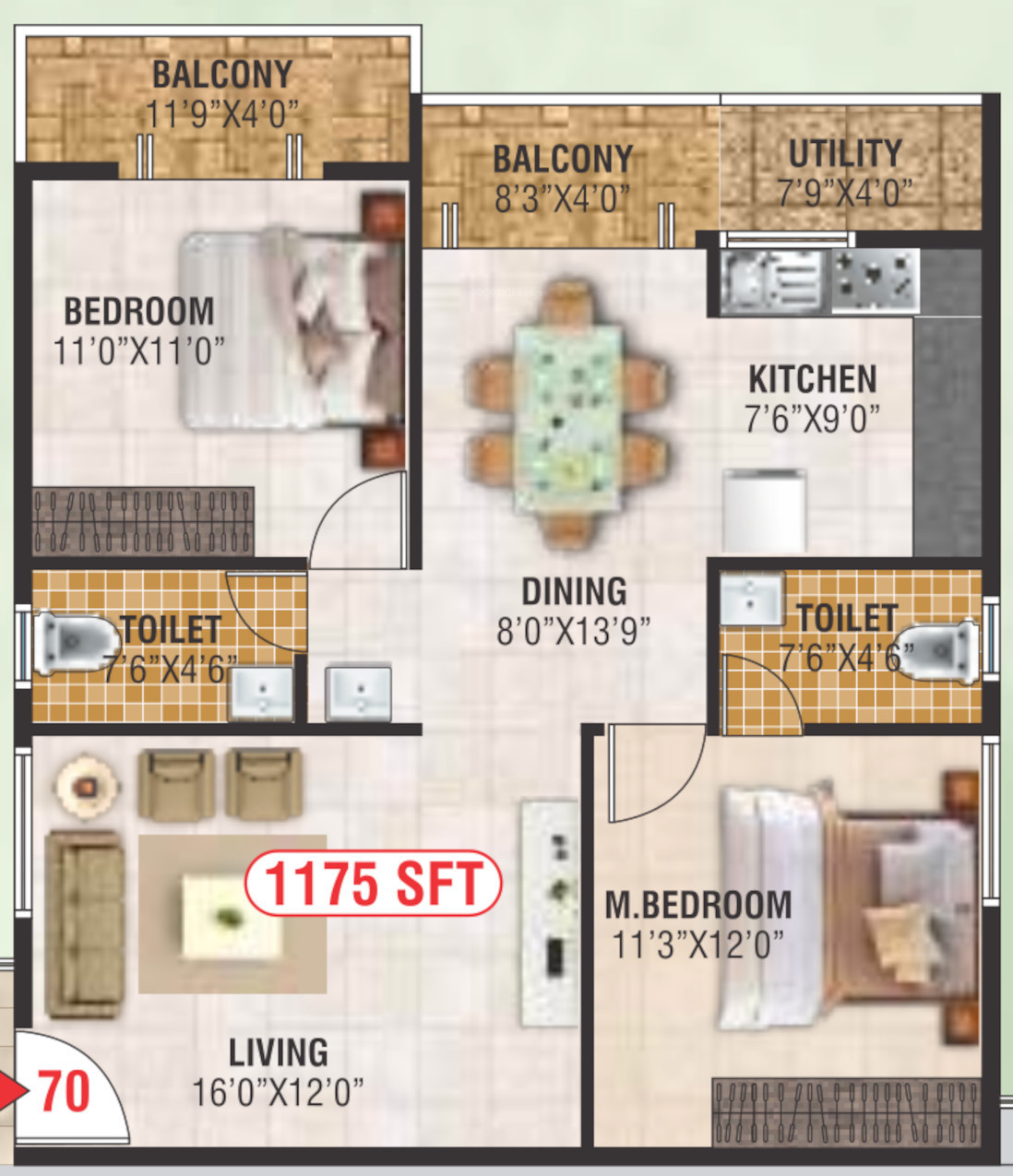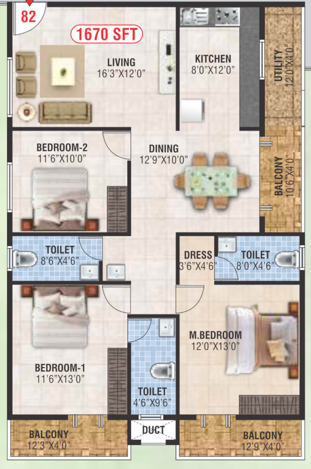 ![]() | 1670 sq ft (3BHK+3T) | - |