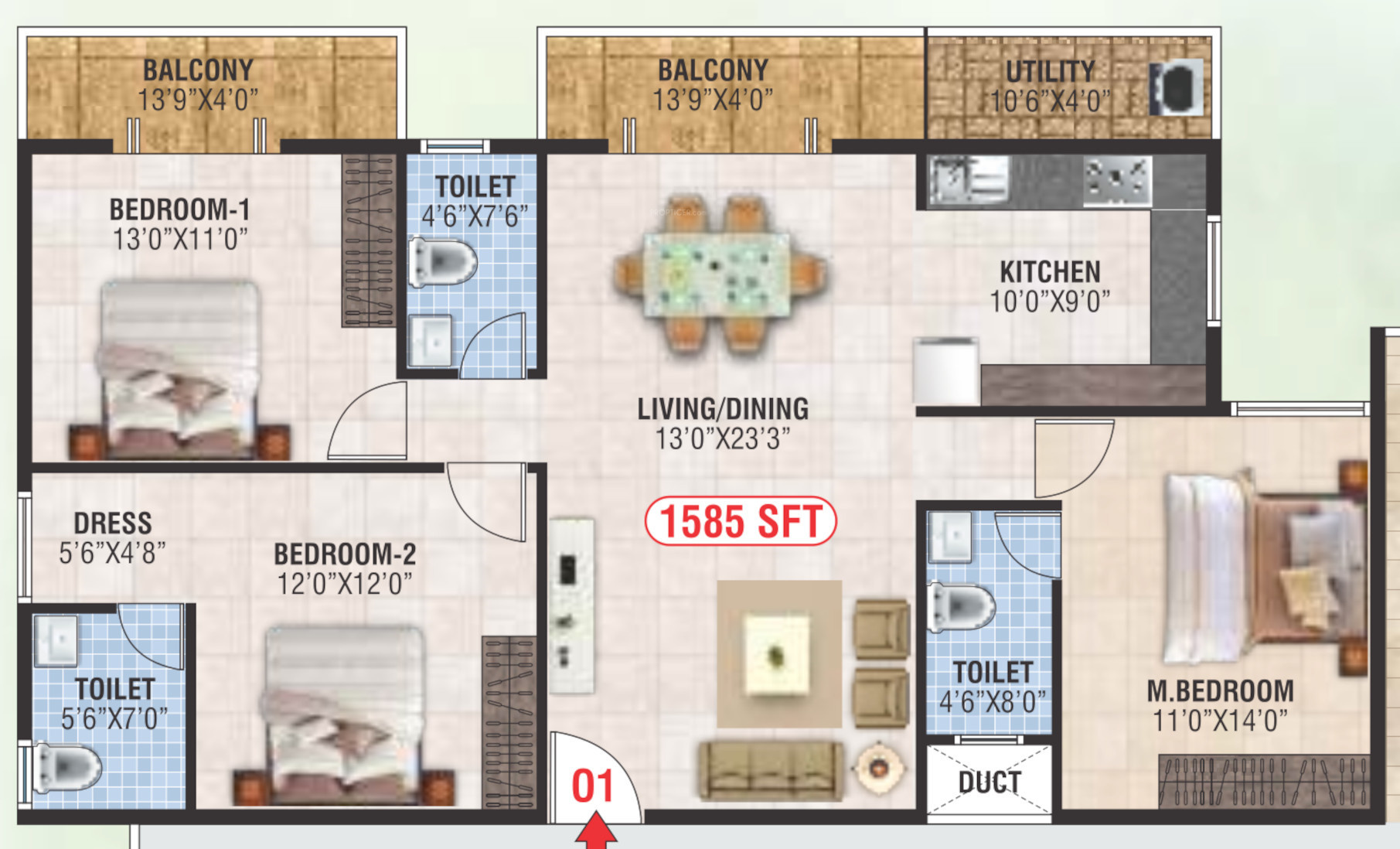 ![]() | 1585 sq ft (3BHK+3T) | - |