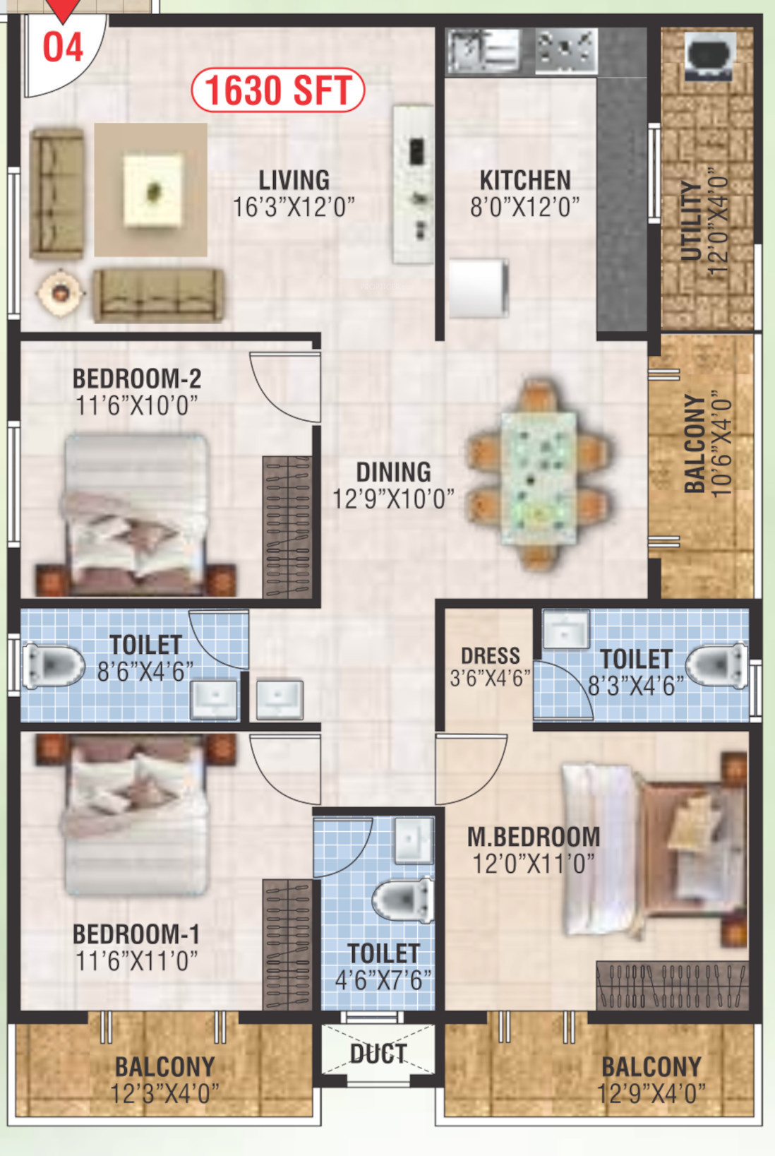 ![]() | 1630 sq ft (3BHK+3T) | - |