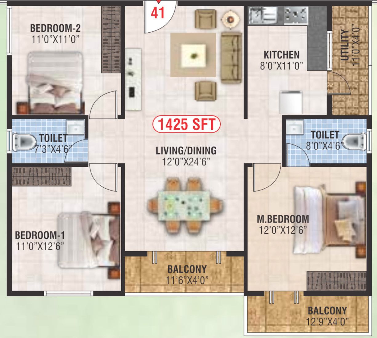 ![]() | 1425 sq ft (3BHK+3T) | - |