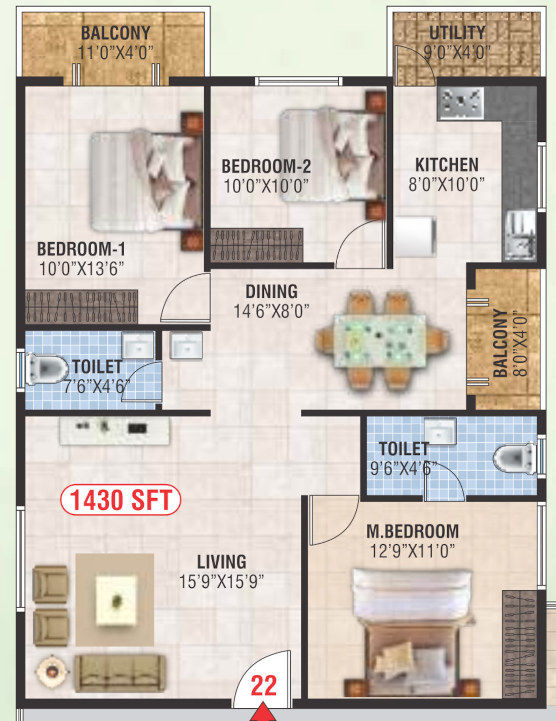 ![]() | 1430 sq ft (3BHK+3T) | - |