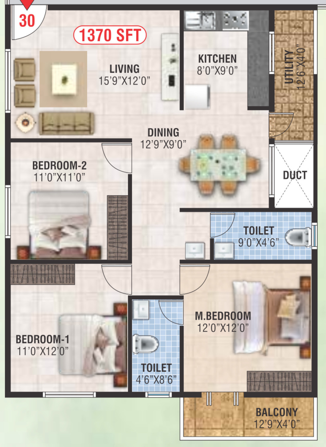 ![]() | 1370 sq ft (3BHK+3T) | - |