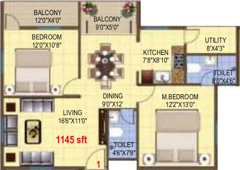 ![]() | 1145 sq ft (2BHK+2T) | - |