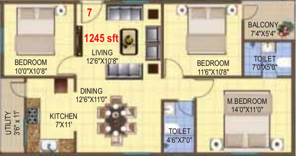 ![]() | 1170 sq ft (2BHK+2T) | - |