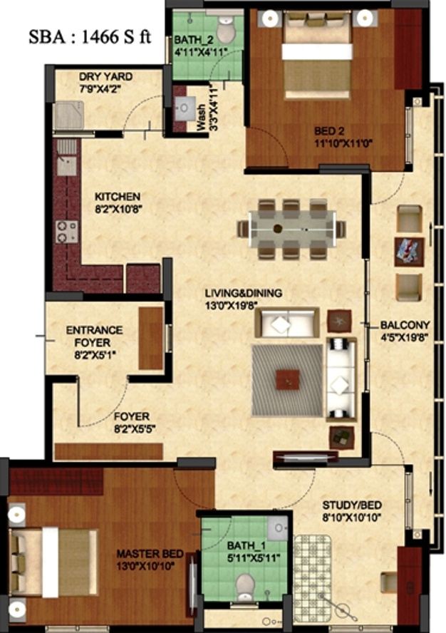 ![]() | 1466 sq ft (2BHK+2T) | - |