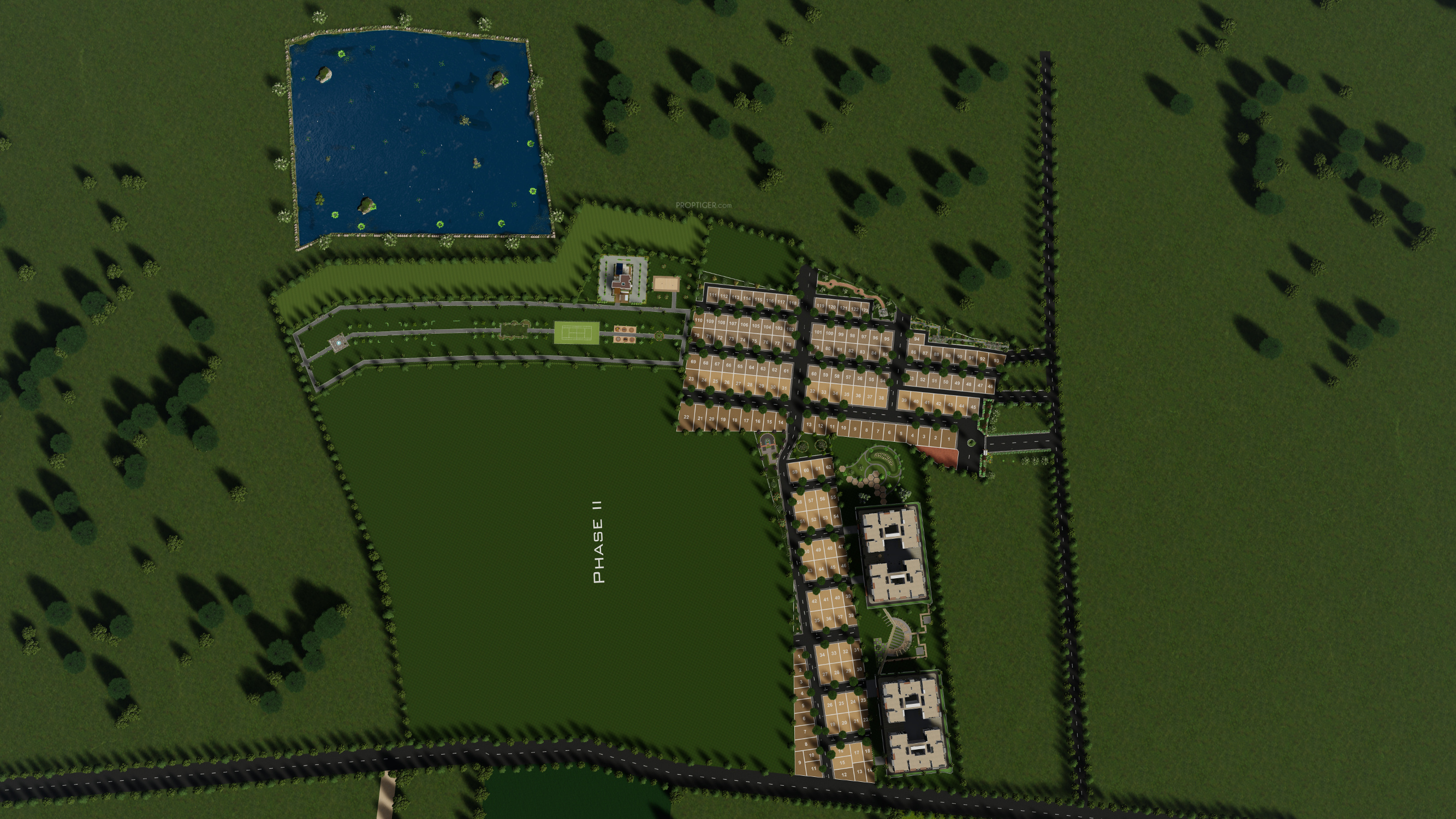 - 3 open side properties, Lush greenery