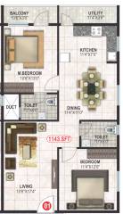 2BHK+2T (1,143 sq ft)