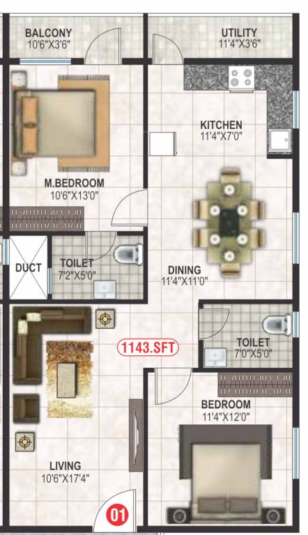 - 2 BHK 1143 sq ft