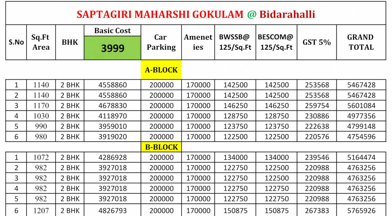 Saptagiri Maharshi GokulamFloor Plans