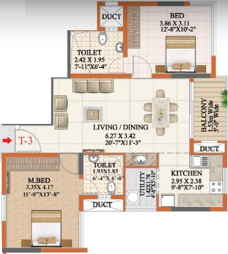 ![]() | 1194 sq ft (2BHK+3T + Study Room) | - |