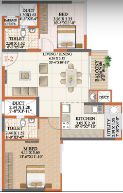 ![]() | 1254 sq ft (2BHK+3T + Study Room) | - |