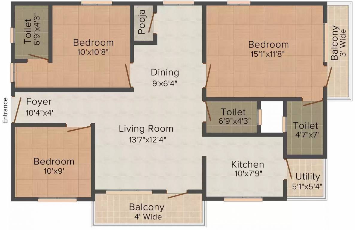 - 3 Bedrooms
