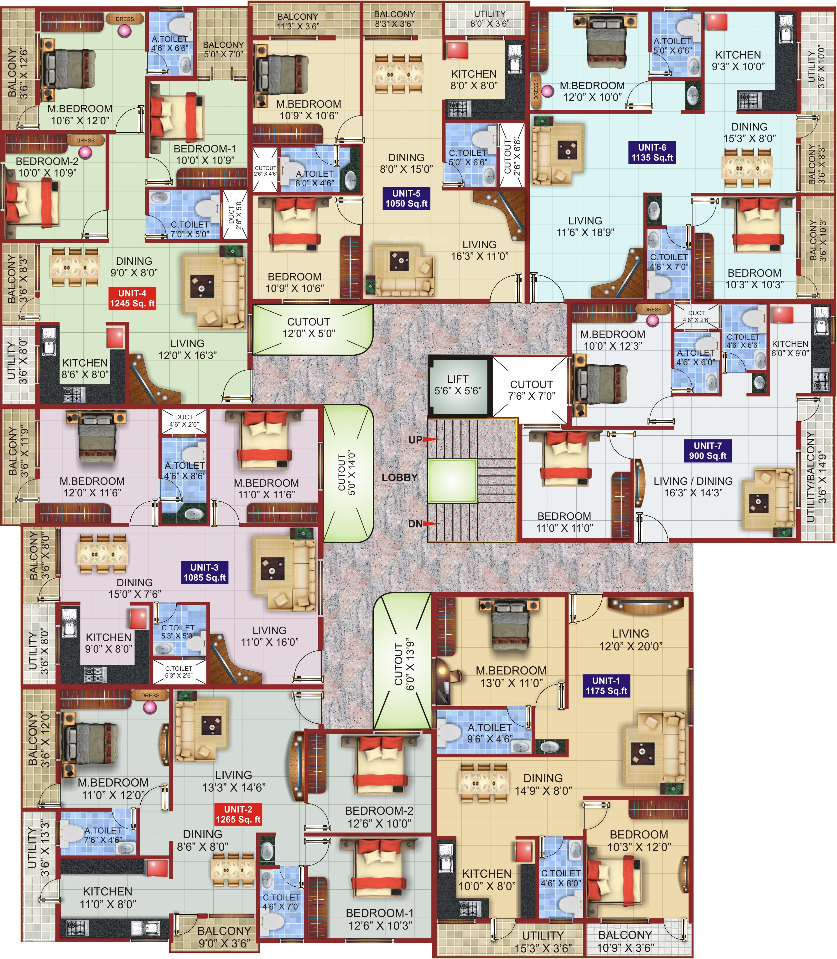 ![]() | 1050 sq ft (2BHK+2T) | - |