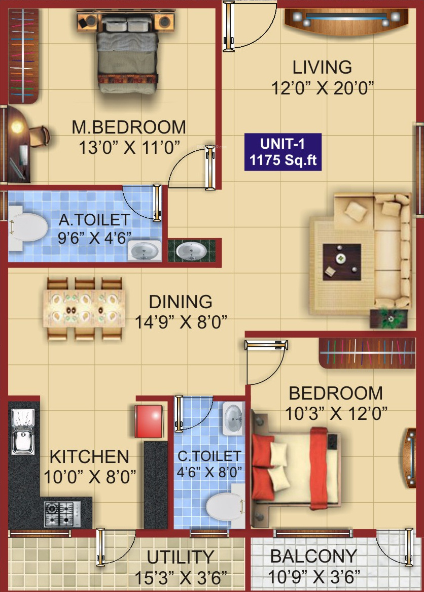 ![]() | 1175 sq ft (2BHK+2T) | - |