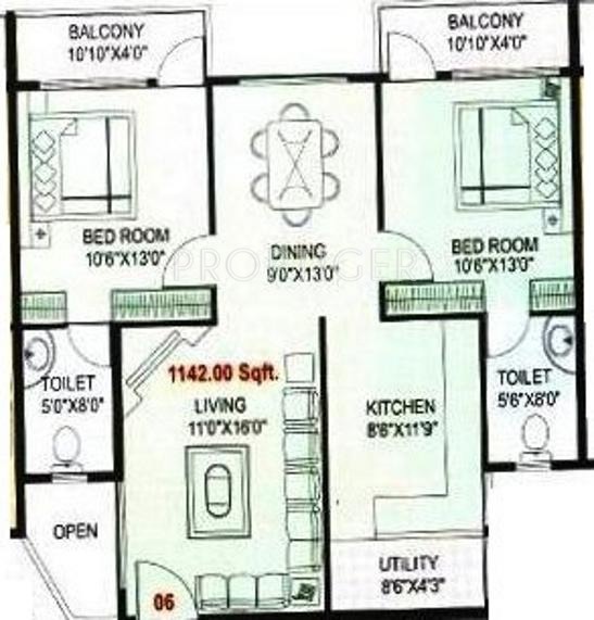 ![]() | 1142 sq ft (2BHK+2T) | - |