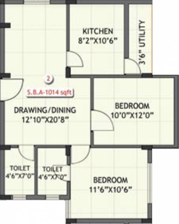 2BHK+2T (1,014 sq ft)