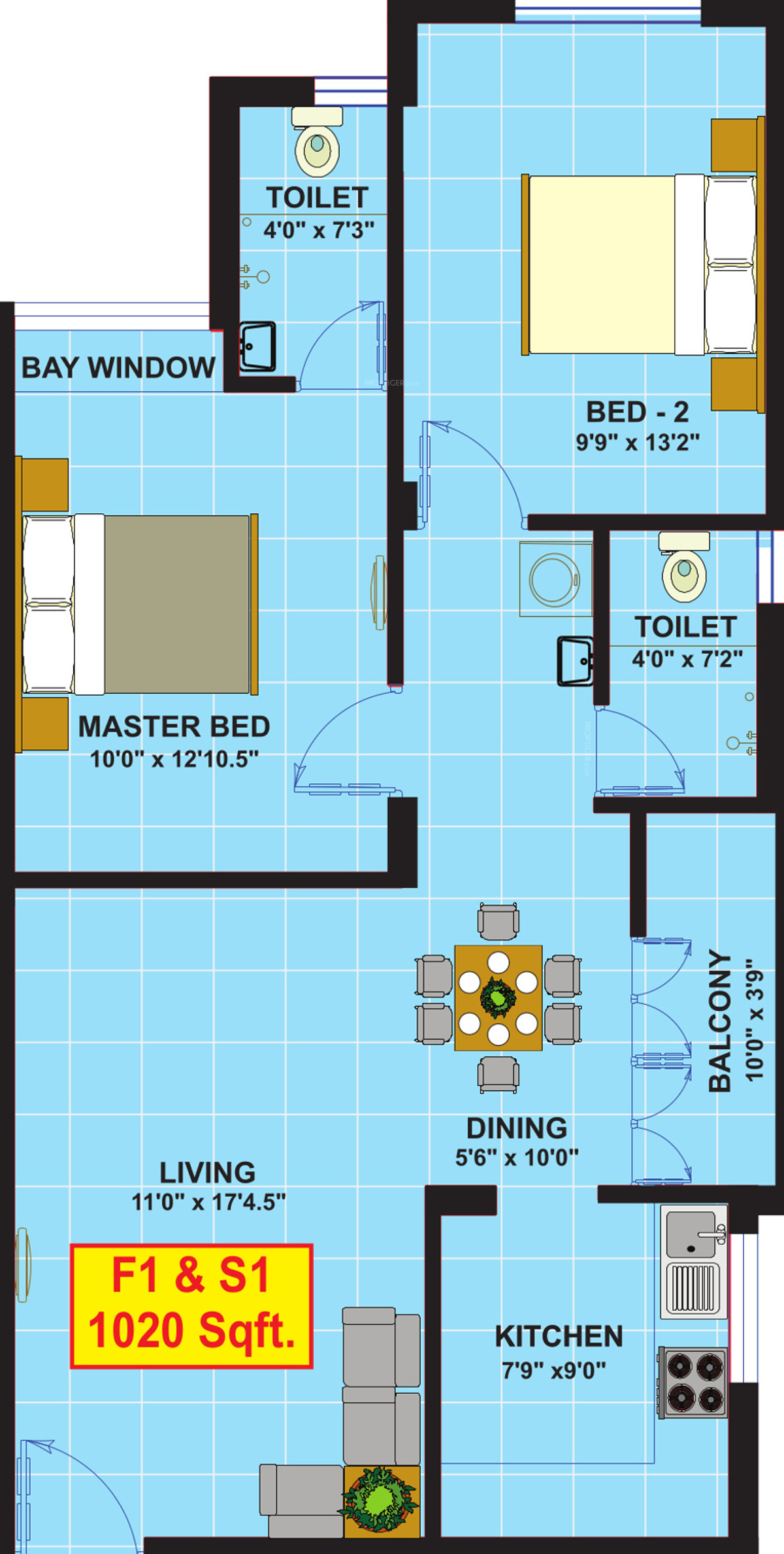 ![]() | 1020 sq ft (2BHK+2T) | - |