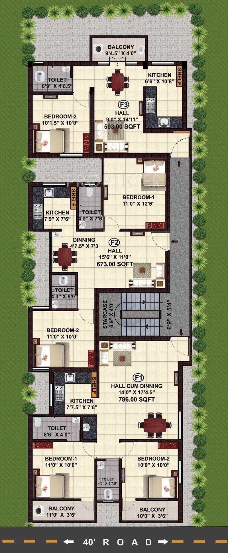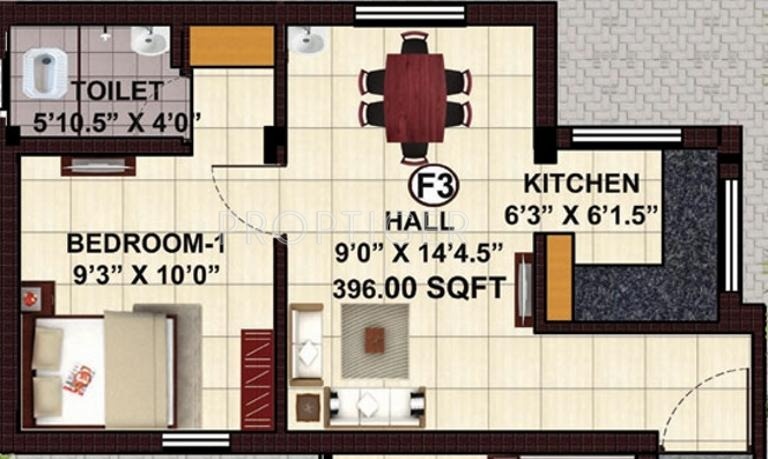 1BHK+1T (500 sq ft)