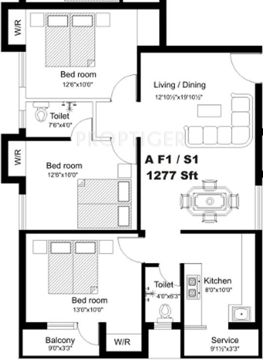 3BHK+2T (1,277 sq ft)