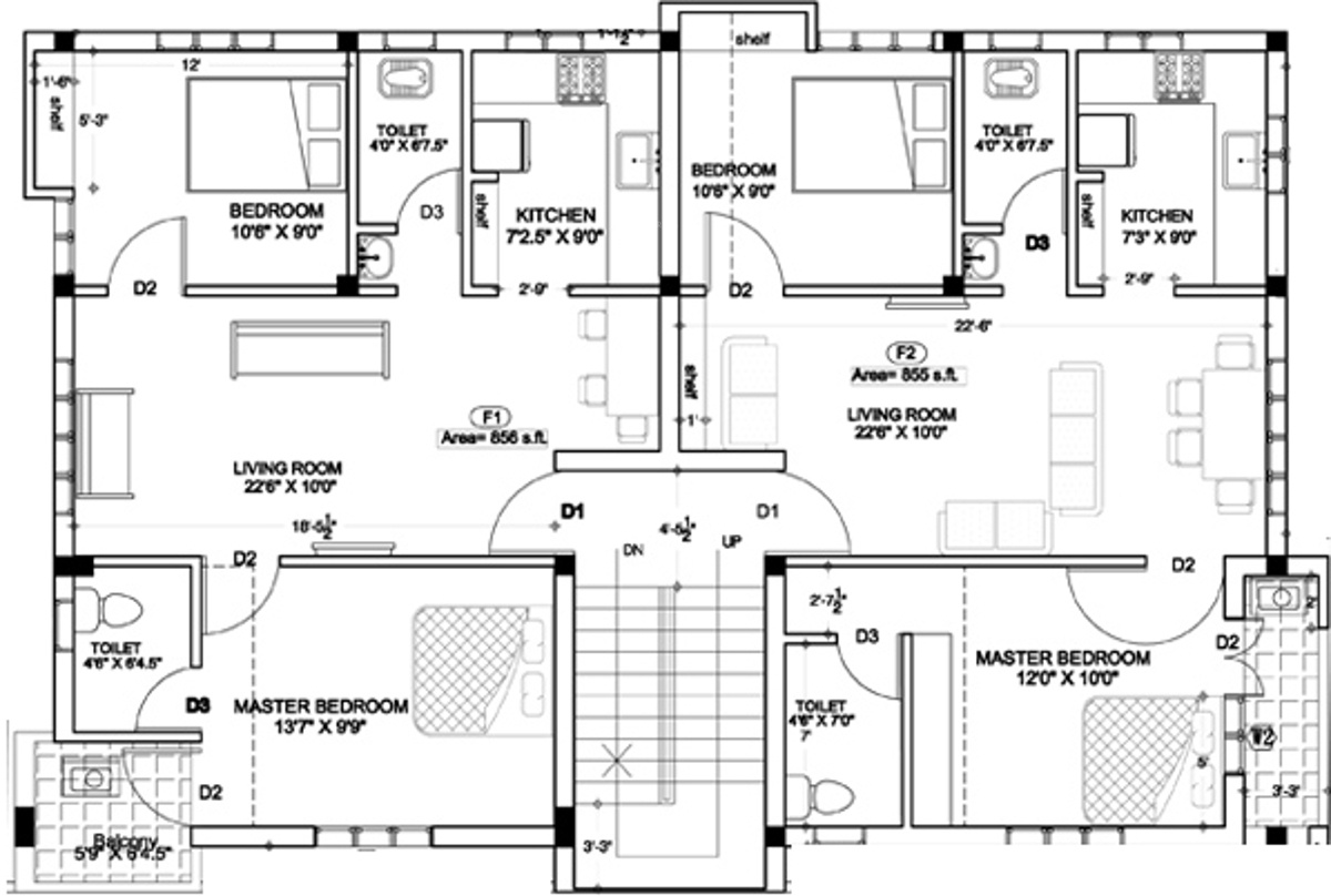 855 - 856 sq ft