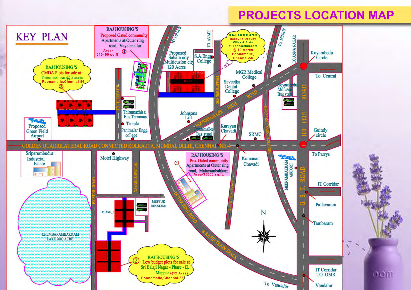 - Current ProjectRaj Sri Balaji Nagarby Raj Housing And EstatesPoonamallee, Chennai₹ 73.50 L - ₹ 96.25 L2 BHK Villa1,050 - 1,375 sq ftNov '18