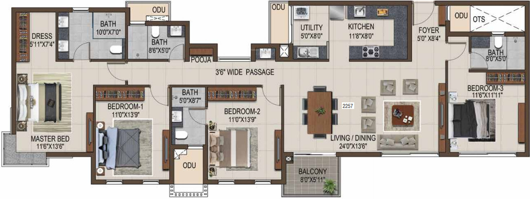 2270 sq ft (3BHK+3T) | - |