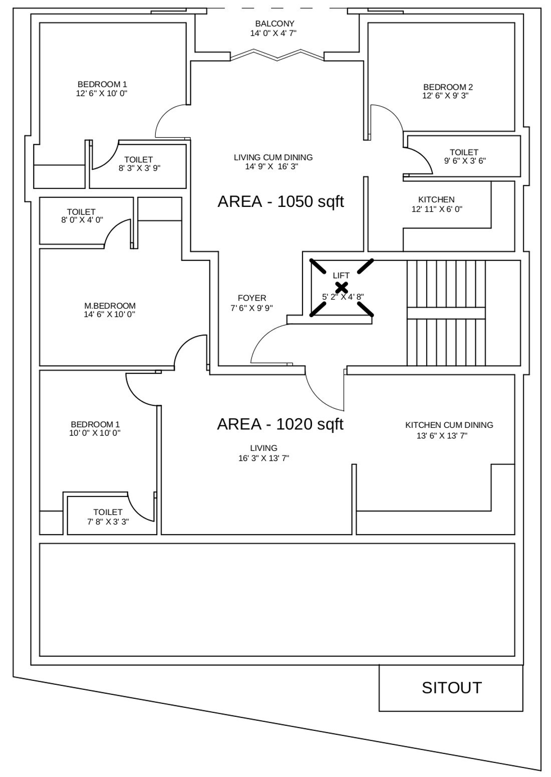 ![]() | 1050 sq ft (2BHK+2T) | - |