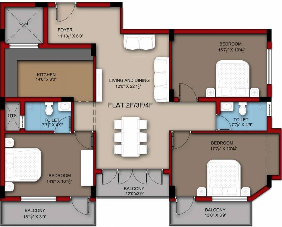 3BHK+2T (1,605 sq ft)