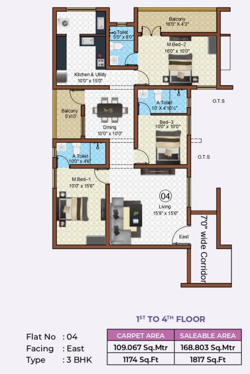 3BHK+3T (1,817 sq ft)