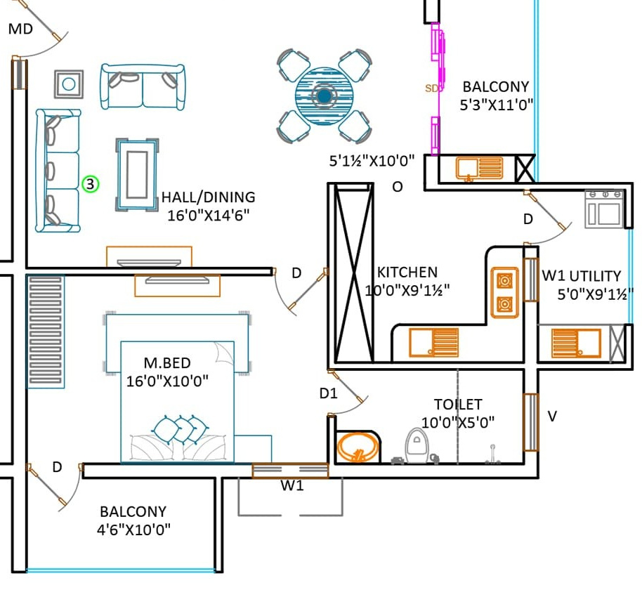1280 sq ft (2BHK+2T) | - | |