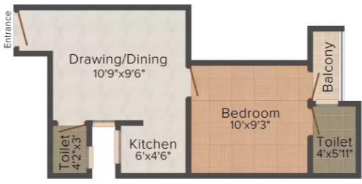 1BHK+2T (600 sq ft)