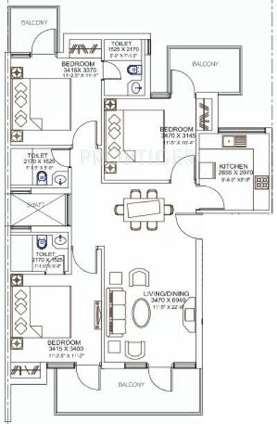 3BHK+3T (1,394 sq ft)