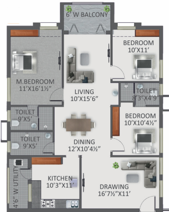 3BHK+3T (2,350 sq ft)