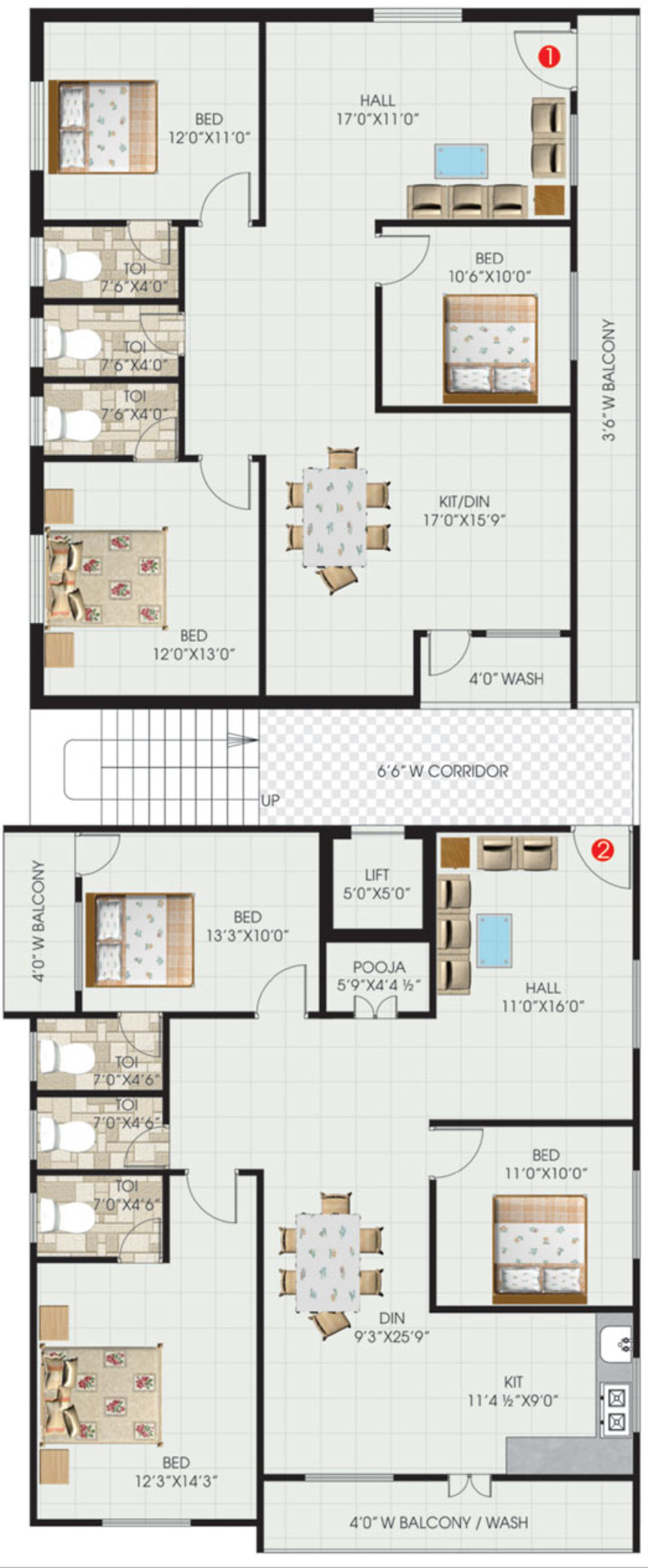1700 sq ft (3BHK+3T) | - |