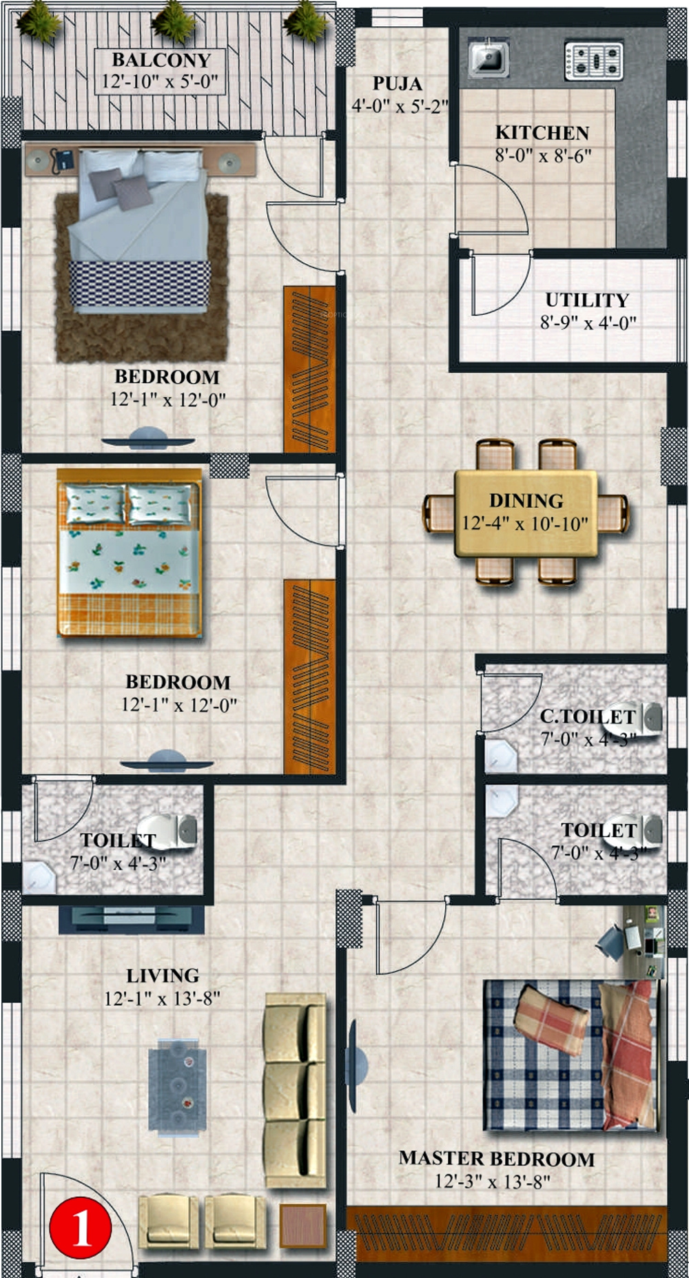 ![]() | 1700 sq ft (3BHK+3T + Pooja Room) | - |