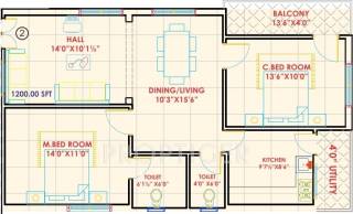 2BHK+2T (1,200 sq ft)