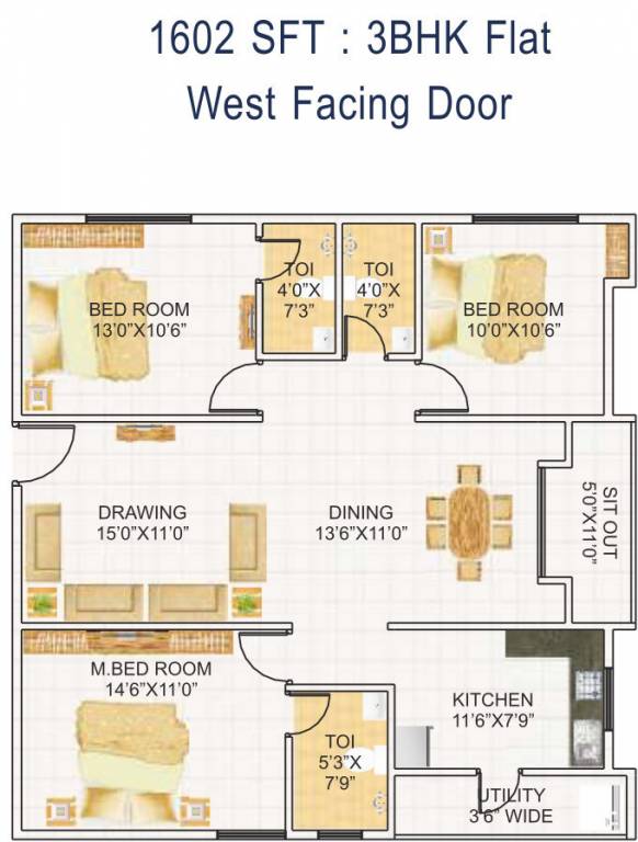3BHK+3T (1,602 sq ft)