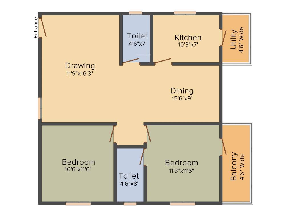 2BHK+2T (1,233 sq ft)